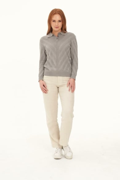LADIES HEMP COTTON V NECK STRIPE TEE – GREY